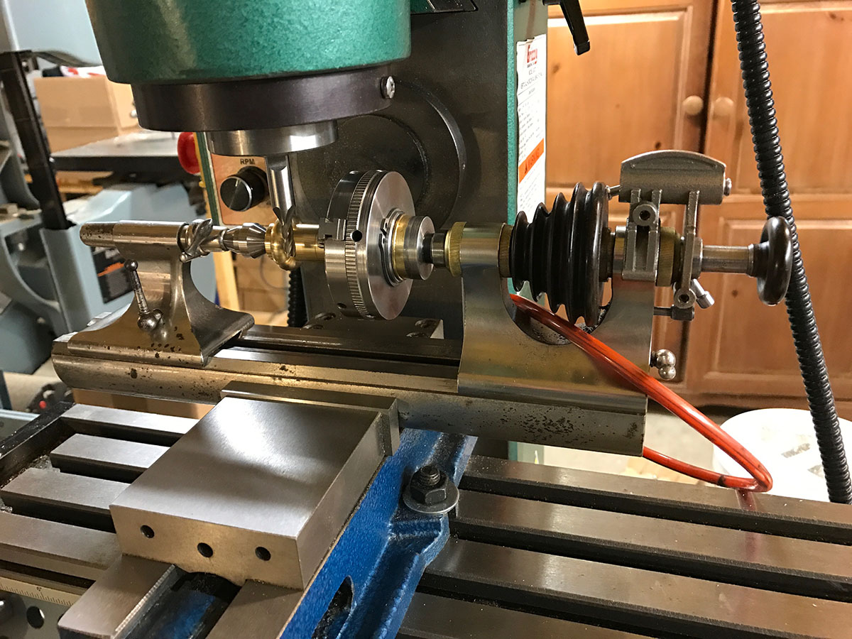 | Lathe used as dividing head on mill |